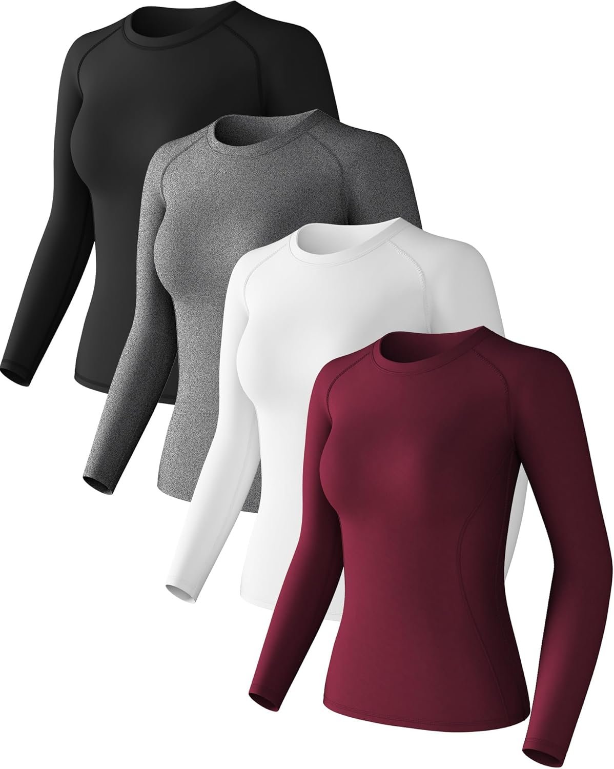 - 📦 Tagless Neckline: Women’s compression shirt features a tagless neckline to prevent chafing and irritation. Comes in a convenient 4-pack set, available in sizes from XS to XL. Whether you prefer a snug or relaxed fit, there’s a size for you
